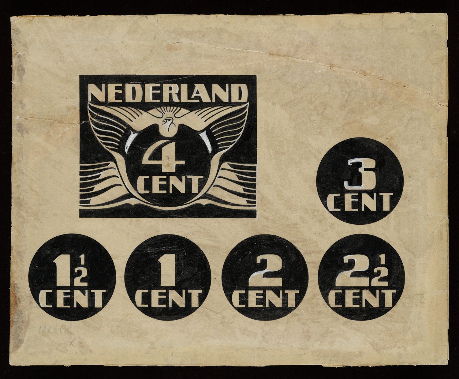 Jan van Krimpen, ontwerp voor postzegels Nederland 1946-1957 Cijferpostzegel 2½ cent