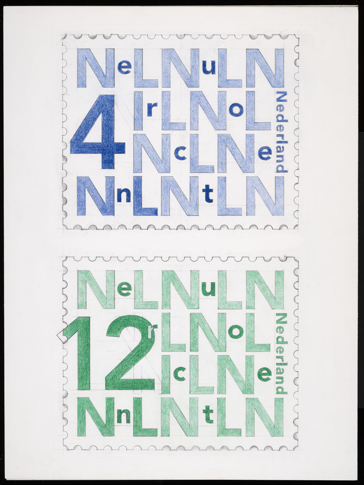Wim Crouwel, voorstudie voor postzegels Nederland 1976 Cijferpostzegels
