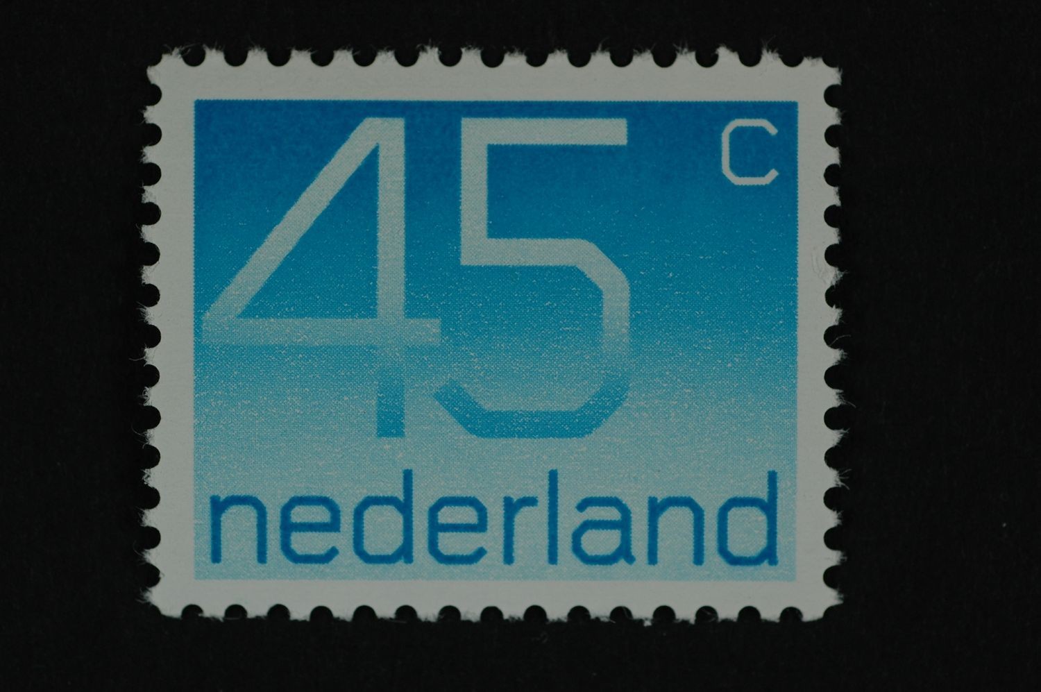 Wim Crouwel, Postzegel Nederland 1976, cijferzegel, 45 cent azuurblauw