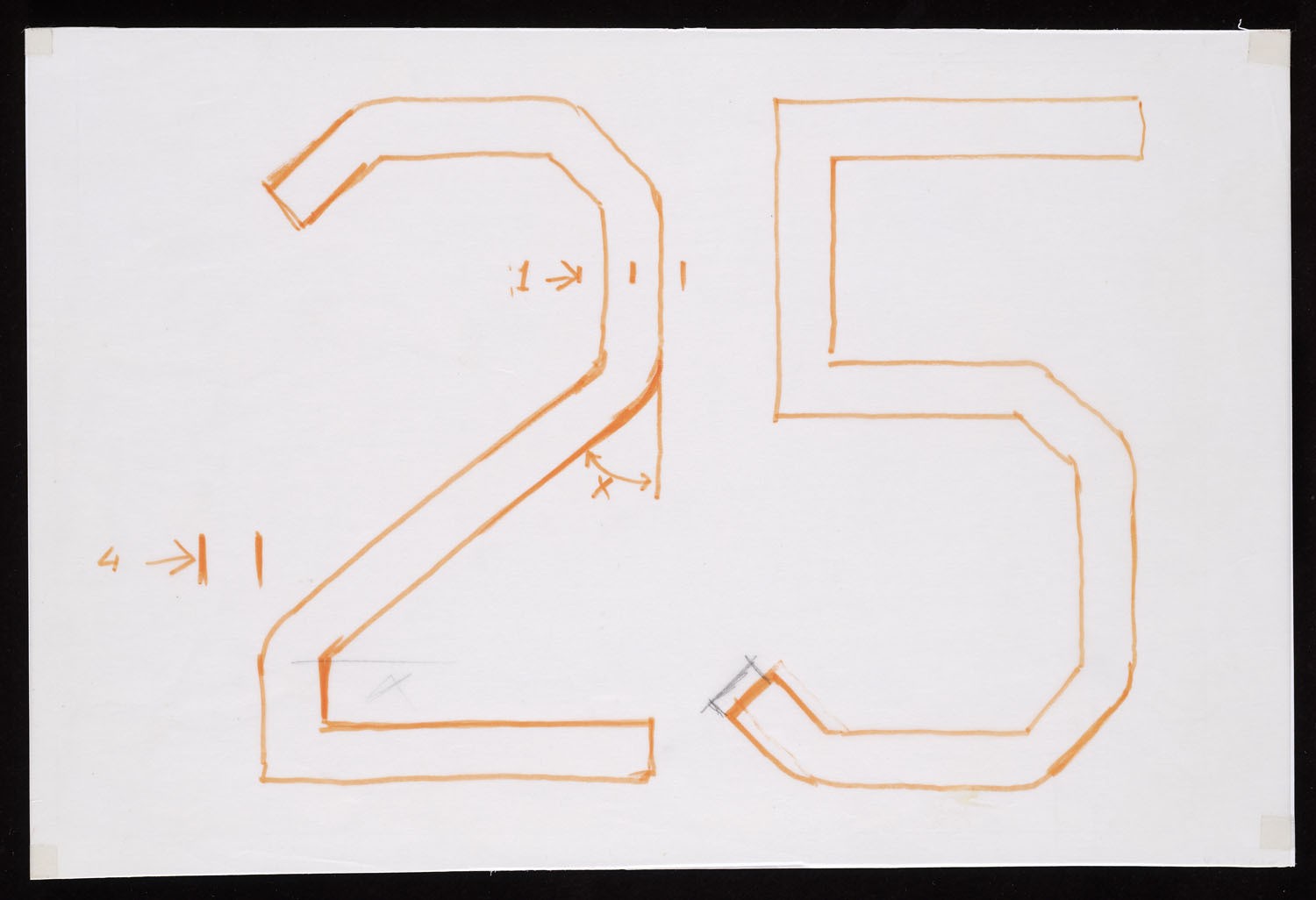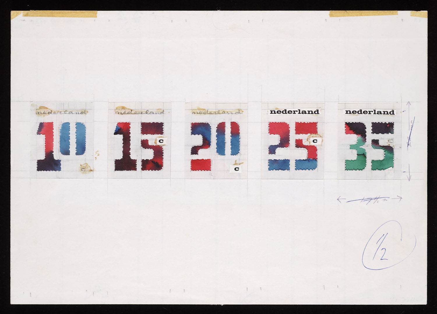 Wim Crouwel, voorstudie voor postzegels Nederland 1976 Cijferpostzegels 25 cent