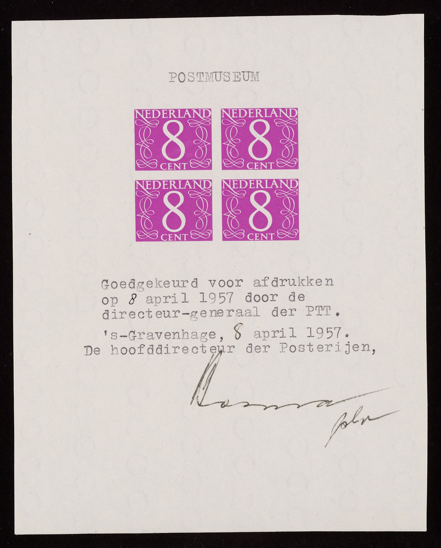 Jan van Krimpen, kleurproef voor postzegels Nederland 1946-1957 Cijferpostzegel