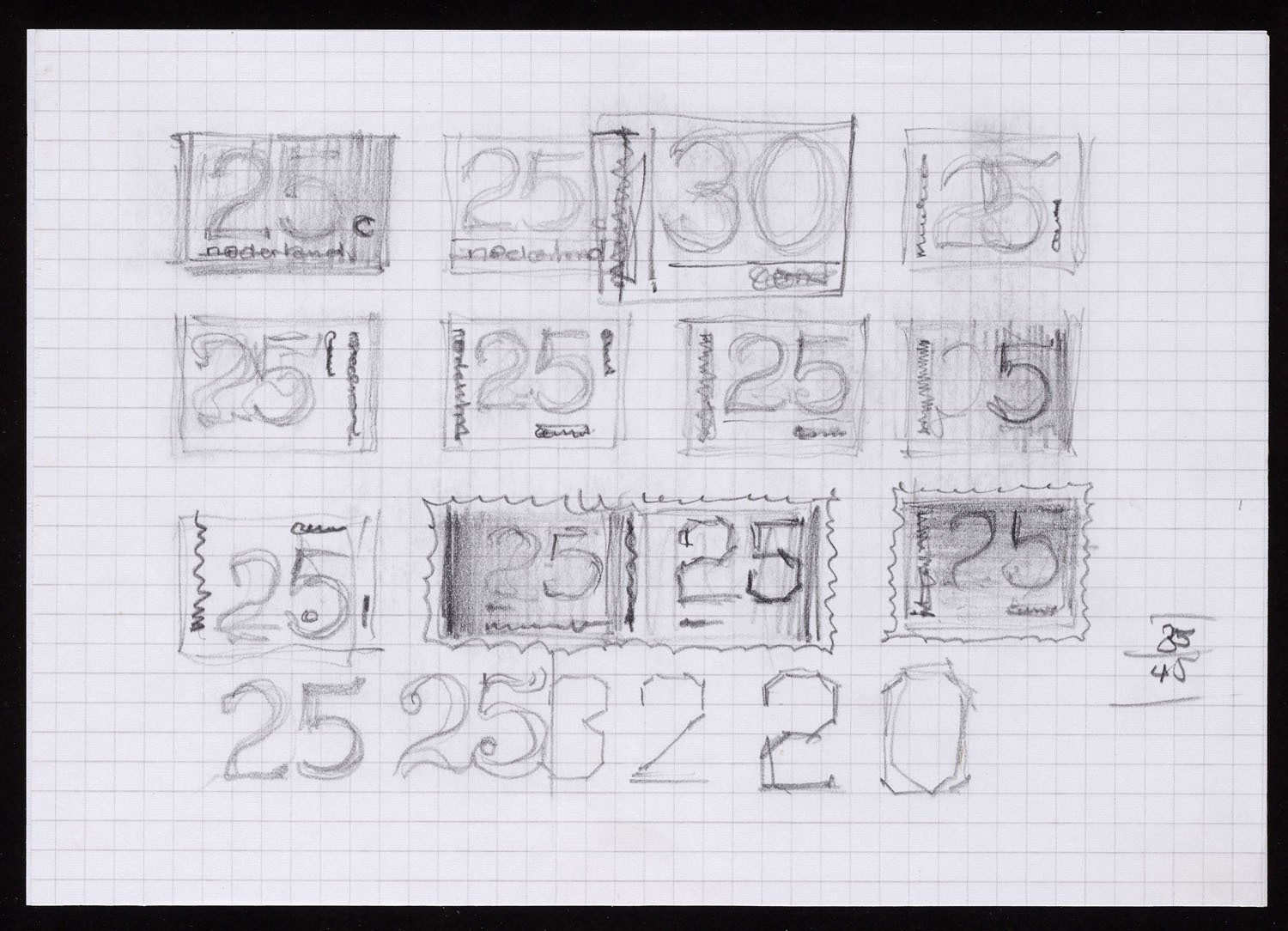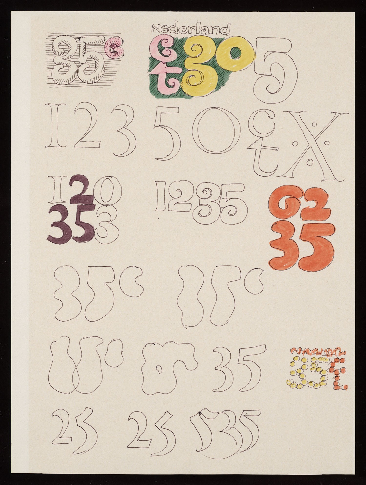 Gerrit Noordzij, schetsen voor postzegels Nederland 1976 Cijferpostzegel