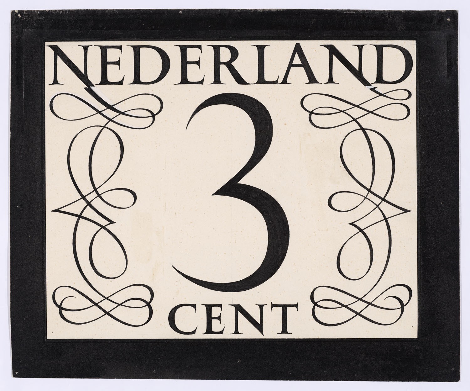 Jan van Krimpen, ontwerp voor postzegels Nederland 1946-1957 Cijferpostzegel 2½ cent
