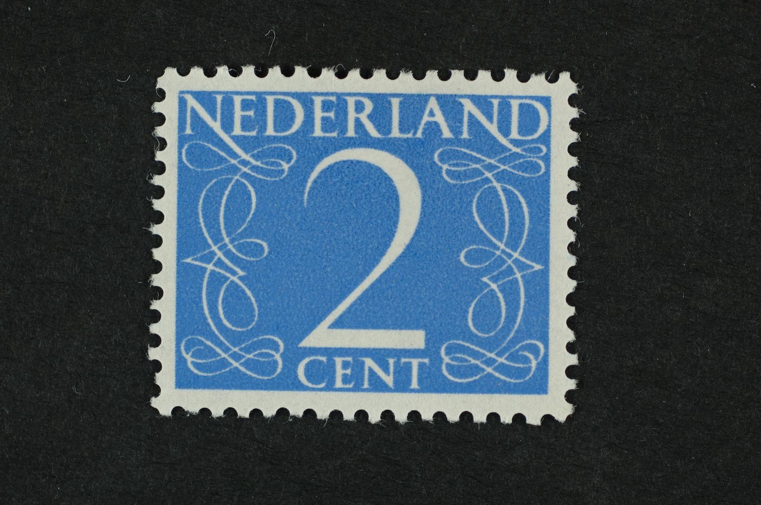 Jan van Krimpen, postzegel Nederland 1946, Cijferpostzegel, 2 cent blauw